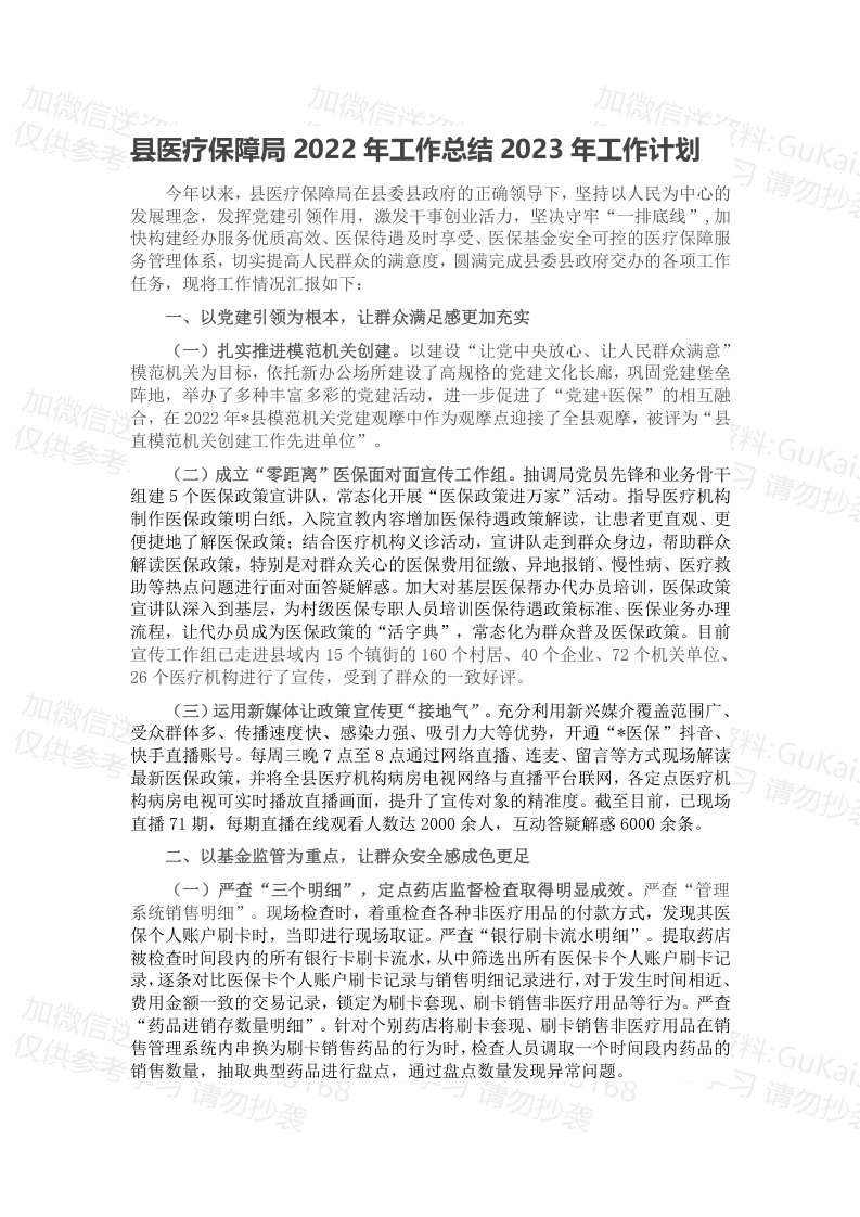 / 县医疗保障局2022年工作总结2023年工作计划