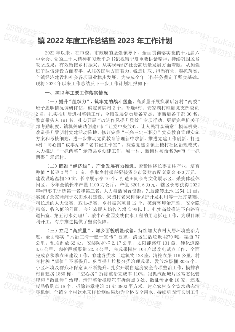 镇2022年度工作总结暨2023年工作计划