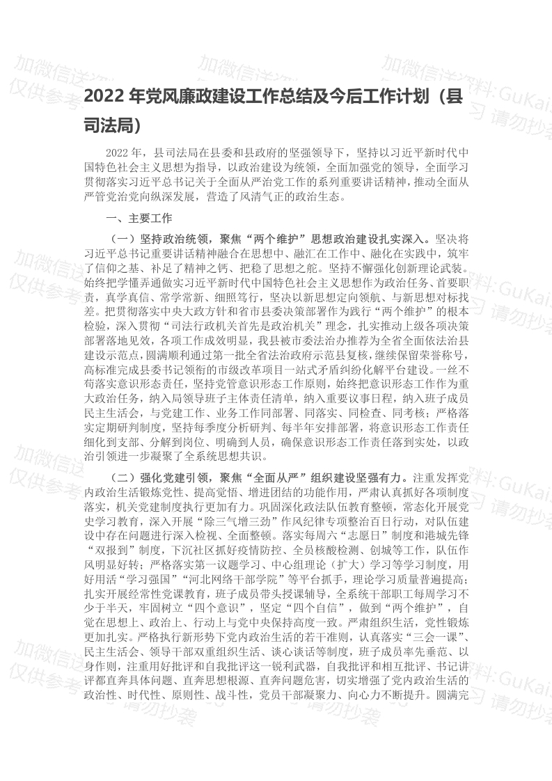 / 2022年党风廉政建设工作总结及今后工作计划(县司法局)