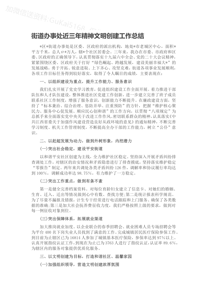 / 街道办事处近三年精神文明创建工作总结