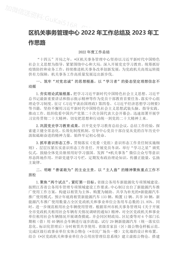 / 区机关事务管理中心2022年工作总结及2023年工作思路
