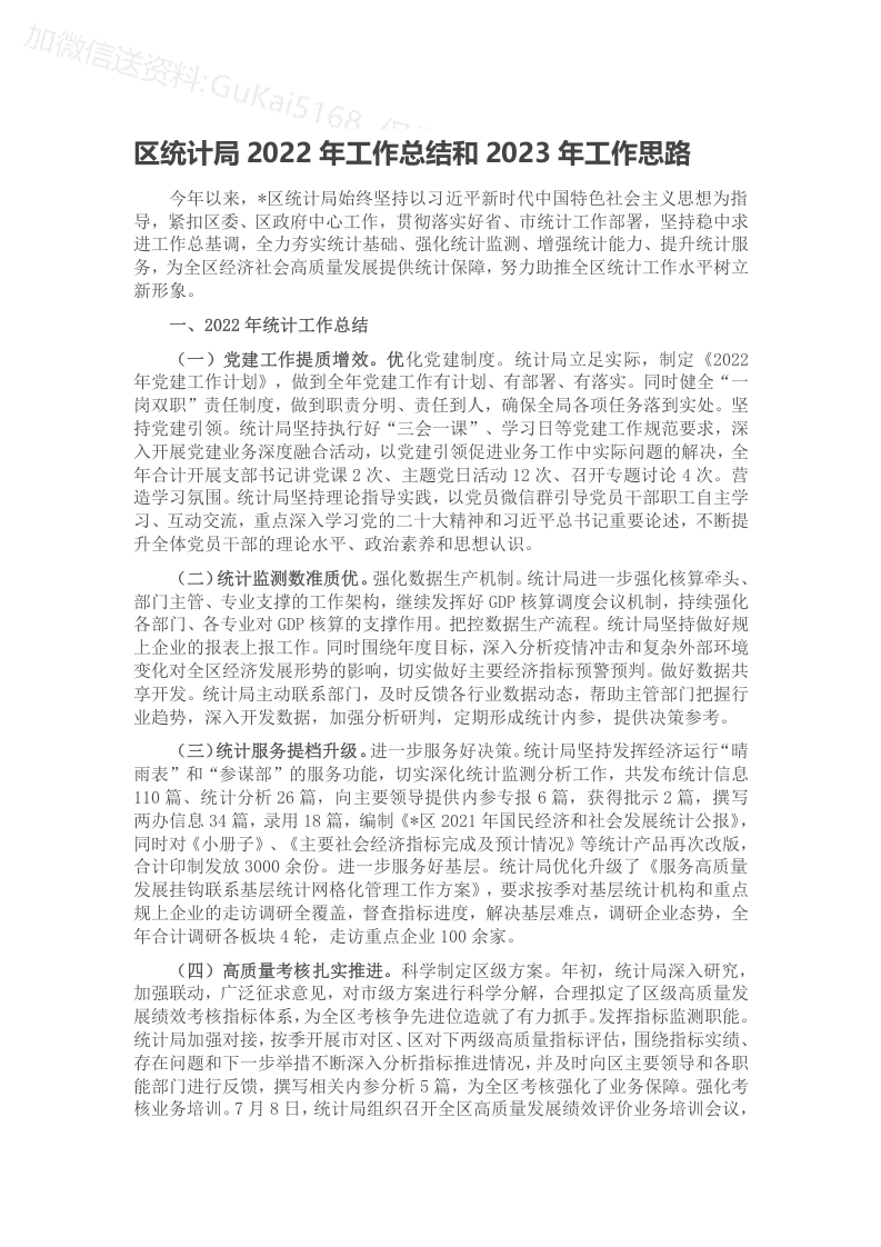 / 区统计局2022年工作总结和2023年工作思路