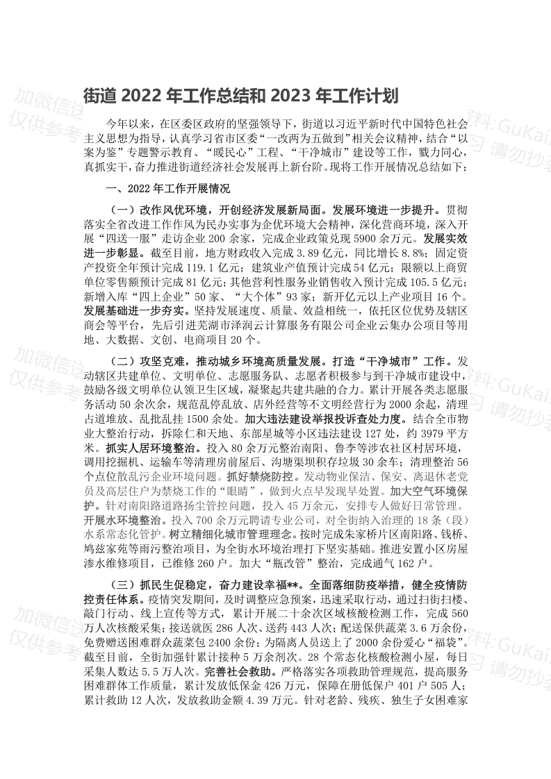 街道2022年工作总结和2023年工作计划(一)