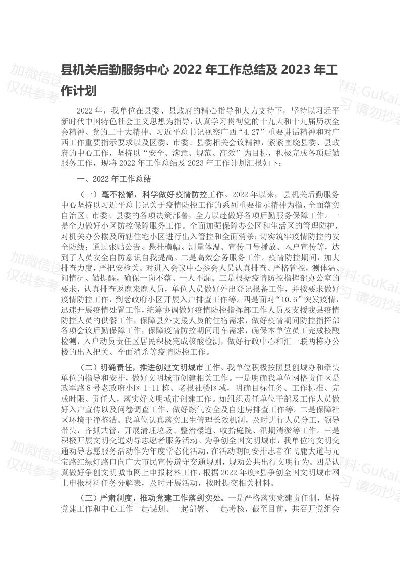 县机关后勤服务中心2022年工作总结及2023年工作计划
