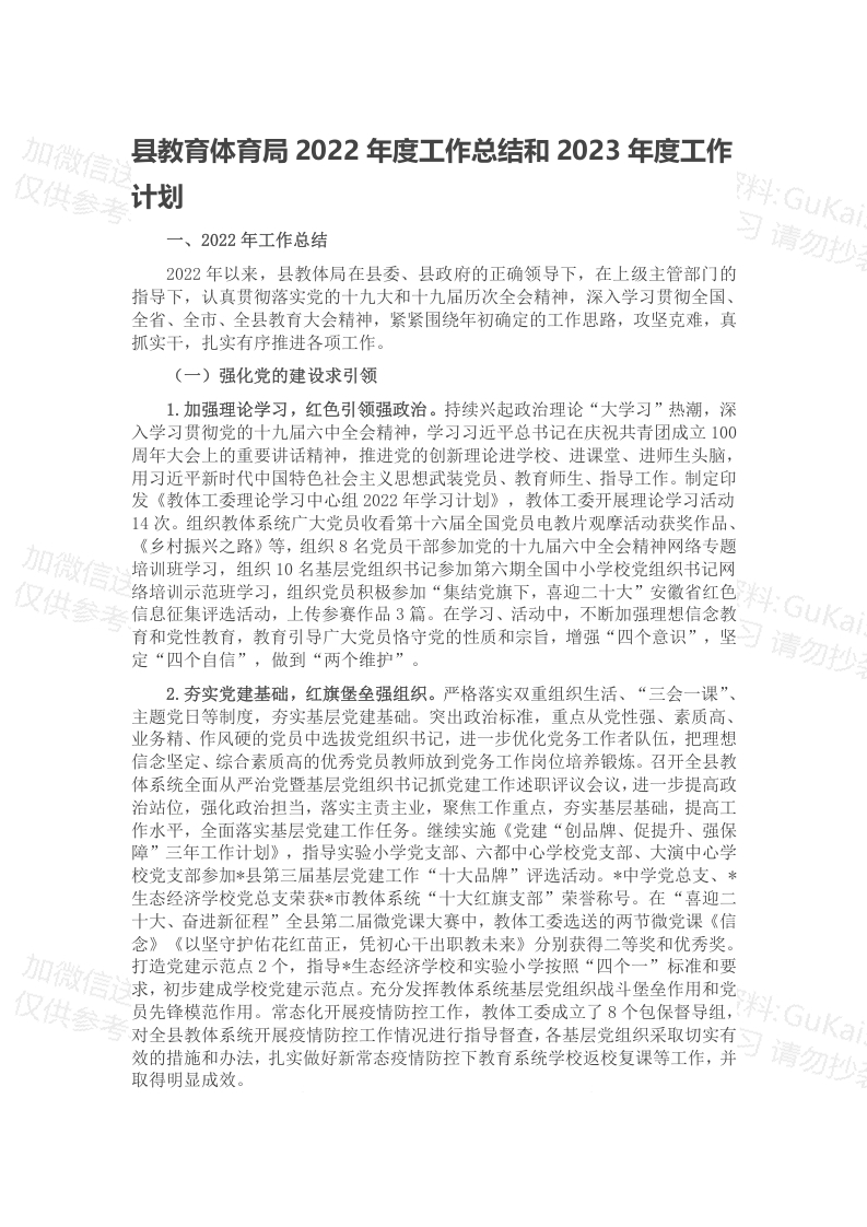 / 县教育体育局2022年度工作总结和2023年度工作计划