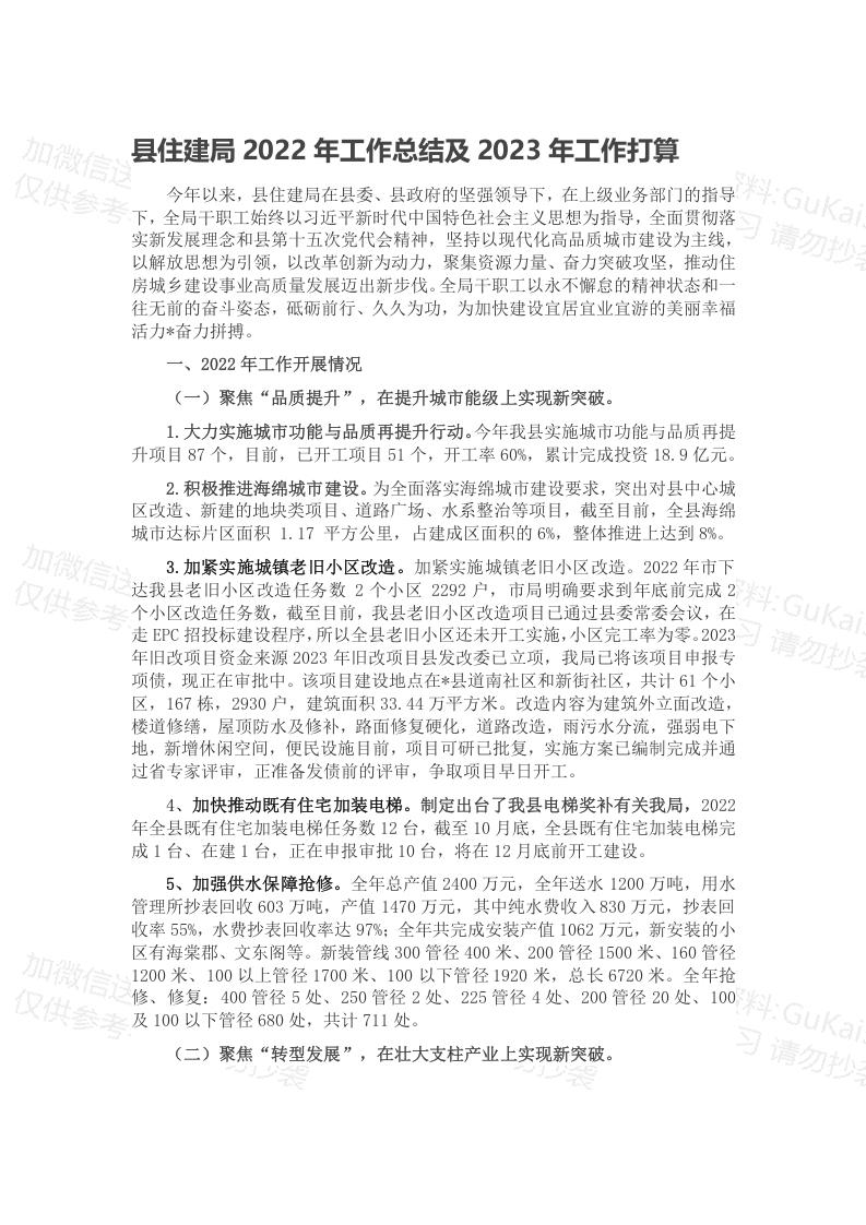 / 县住建局2022年工作总结及2023年工作打算
