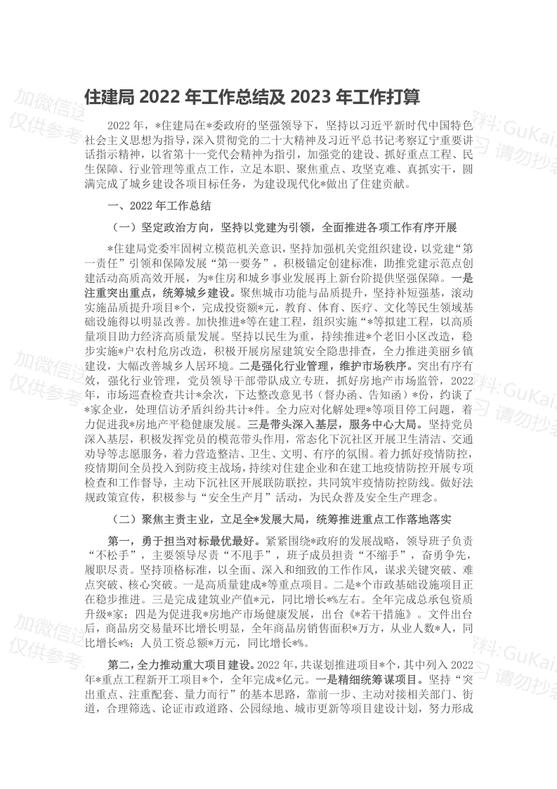 / 住建局2022年工作总结及2023年工作打算