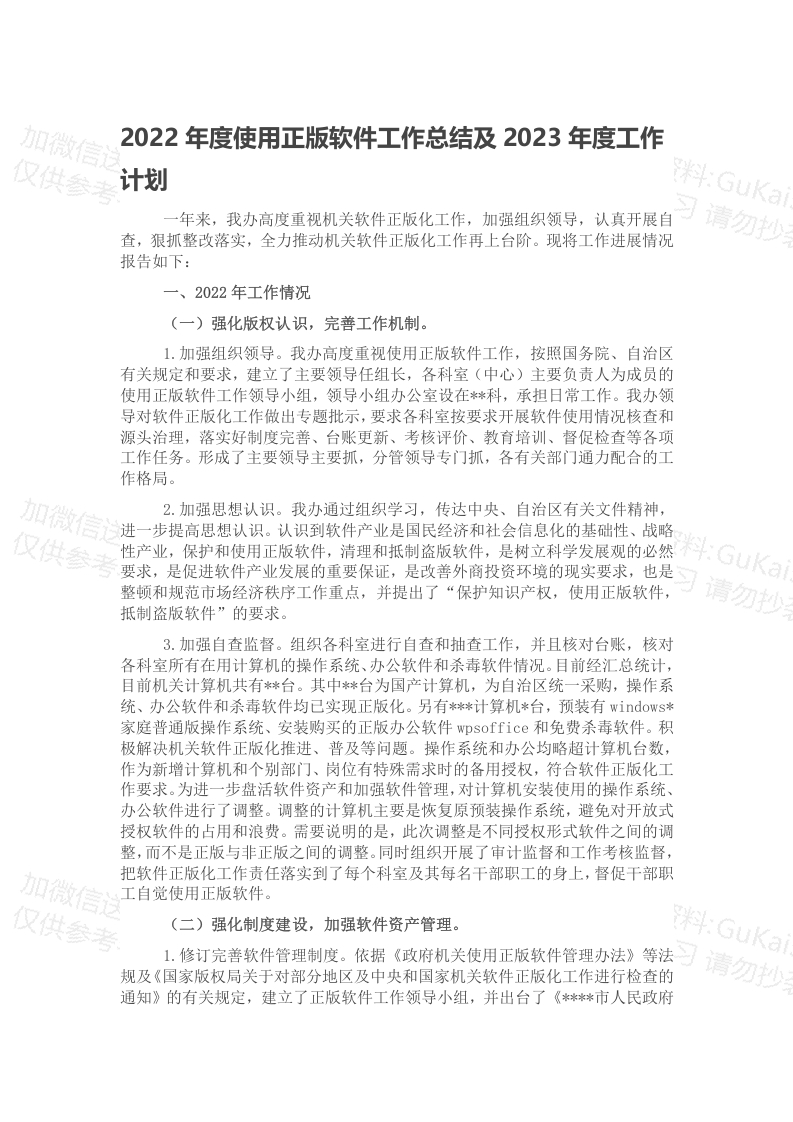 / 2022年度使用正版软件工作总结及2023年度工作计划