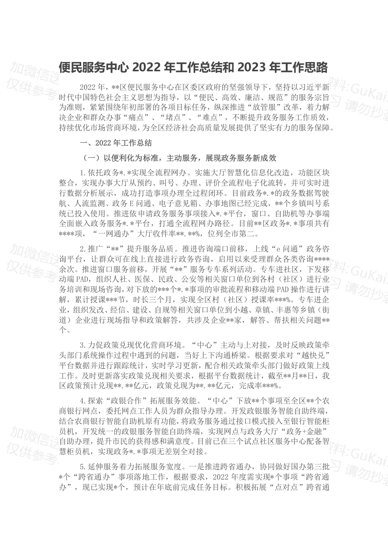 / 便民服务中心2022年工作总结和2023年工作思路