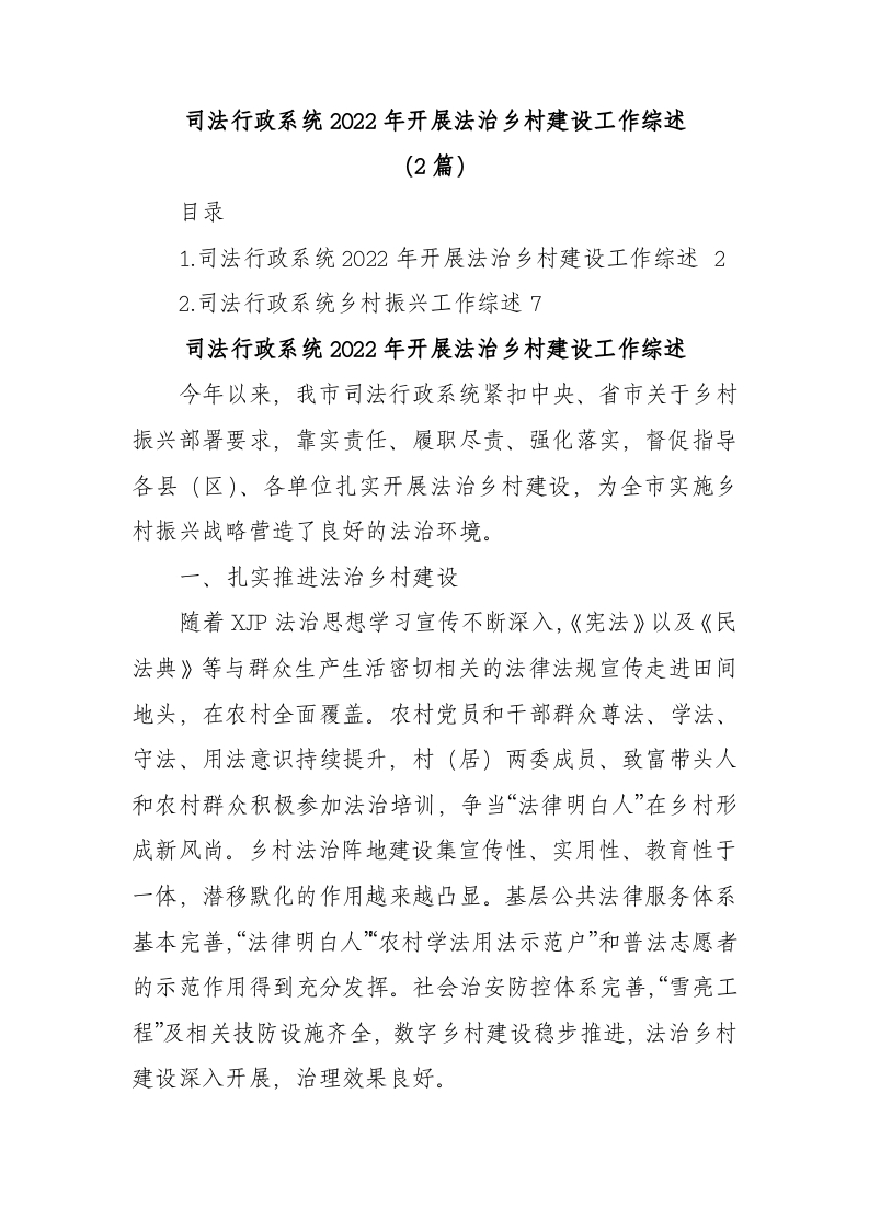 / (2篇)司法行政系统2022年开展法治乡村建设工作综述