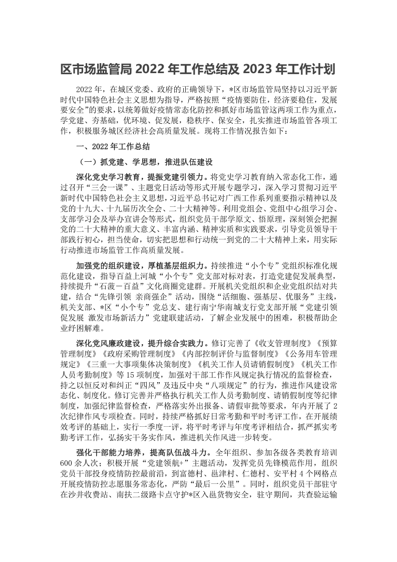 / 区市场监管局2022年工作总结及2023年工作计划
