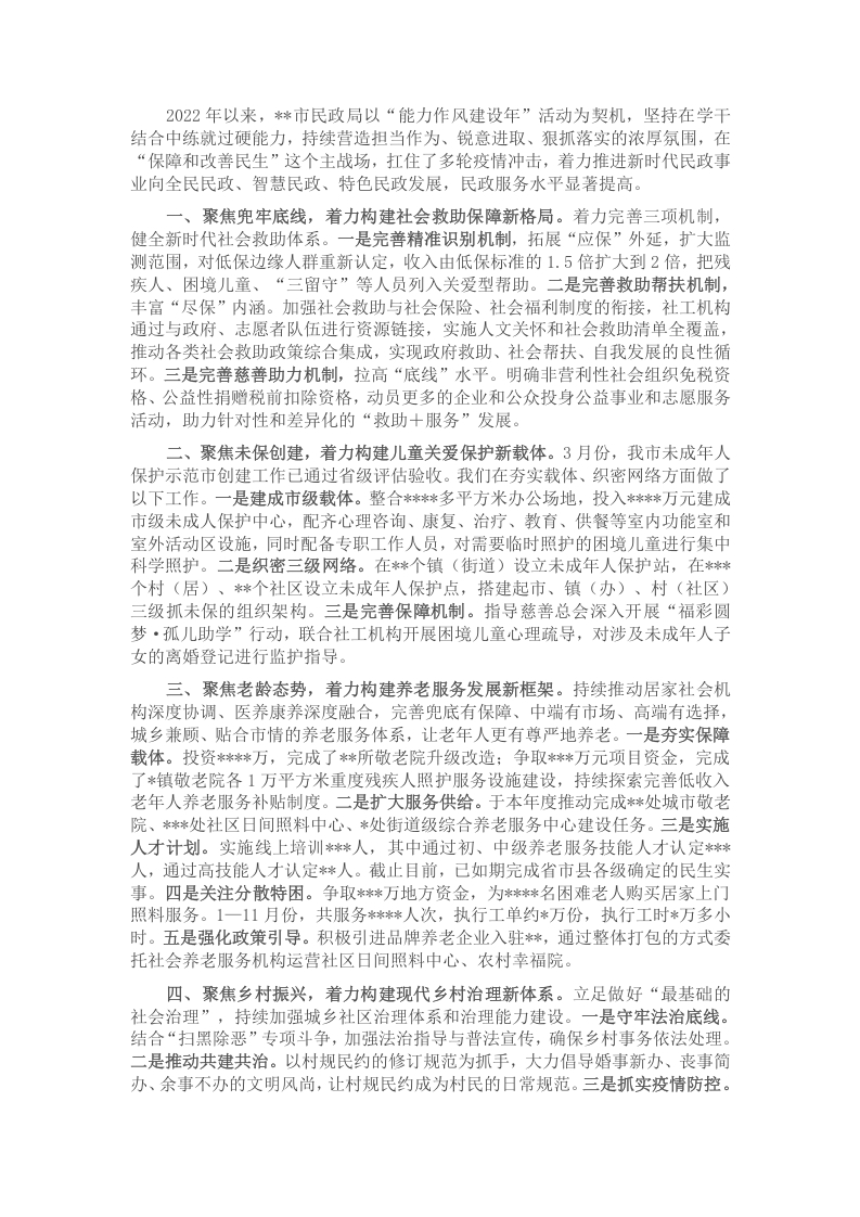 / 某市民政局2022年“能力作风建设年”活动总结