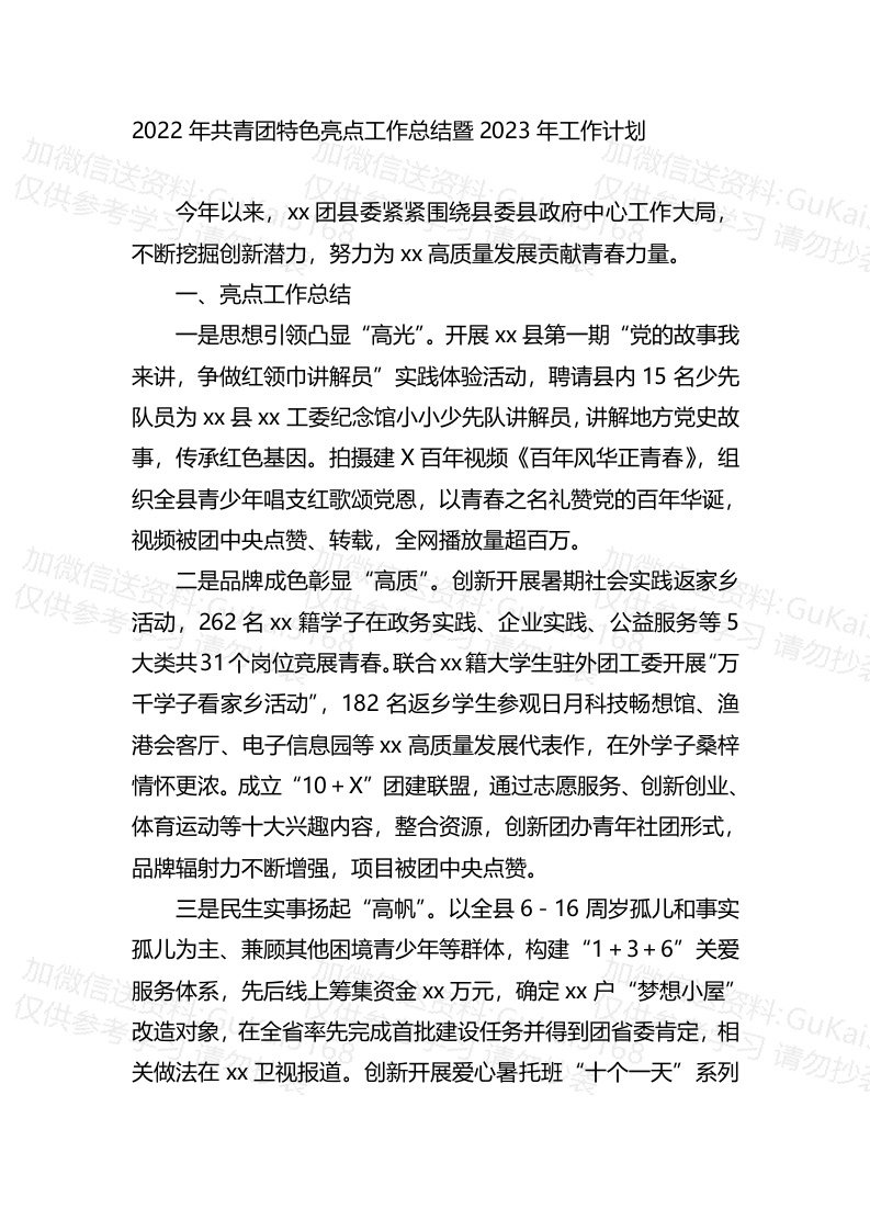 2022年共青团特色亮点工作总结暨2023年工作计划