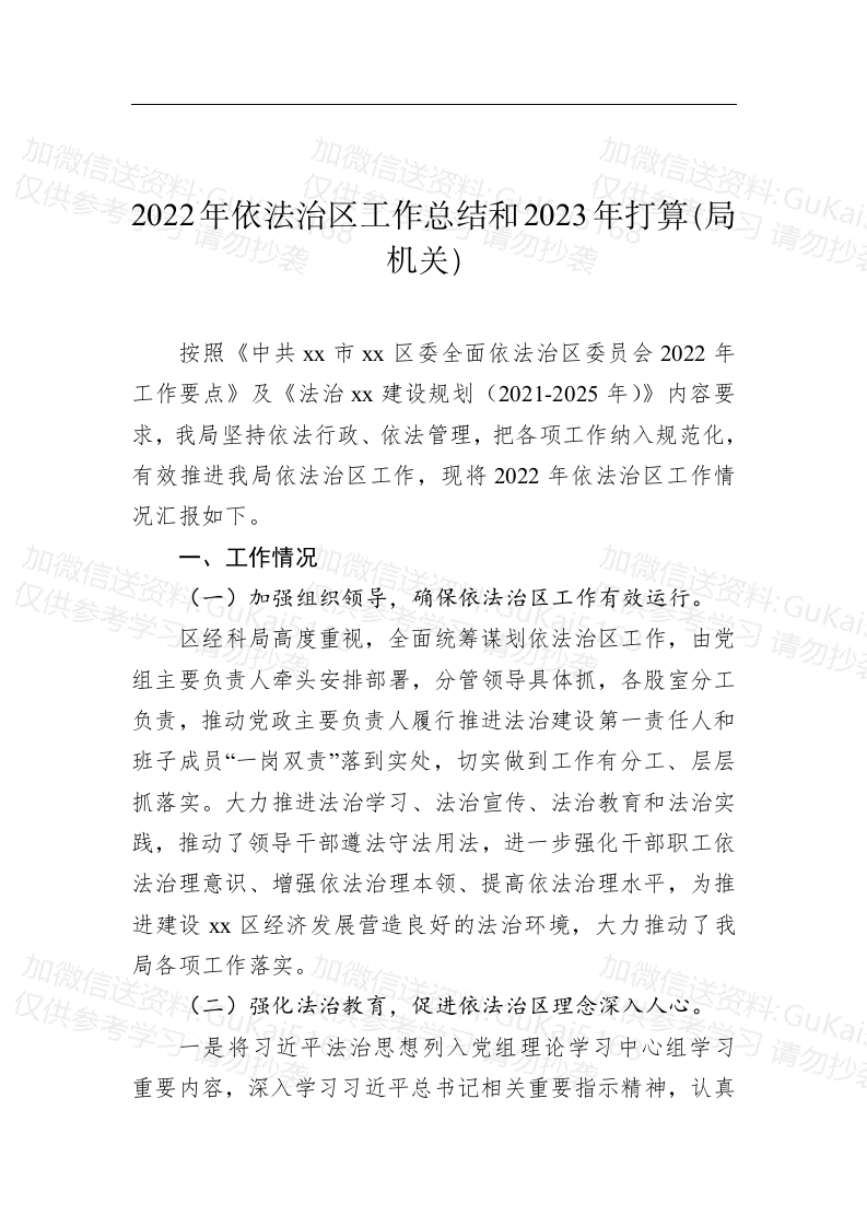 / 2022年依法治区工作总结和2023年打算(局机关)