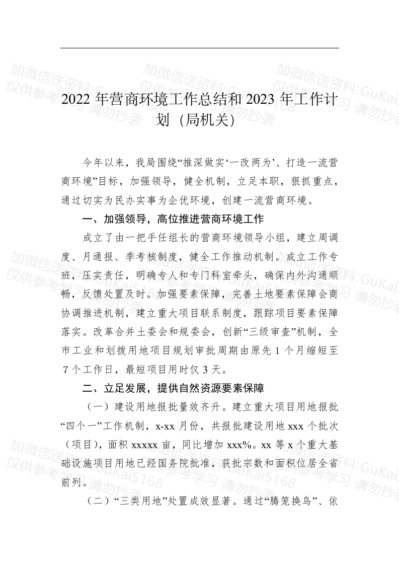 / 2022年营商环境工作总结和2023年工作计划(局机关)