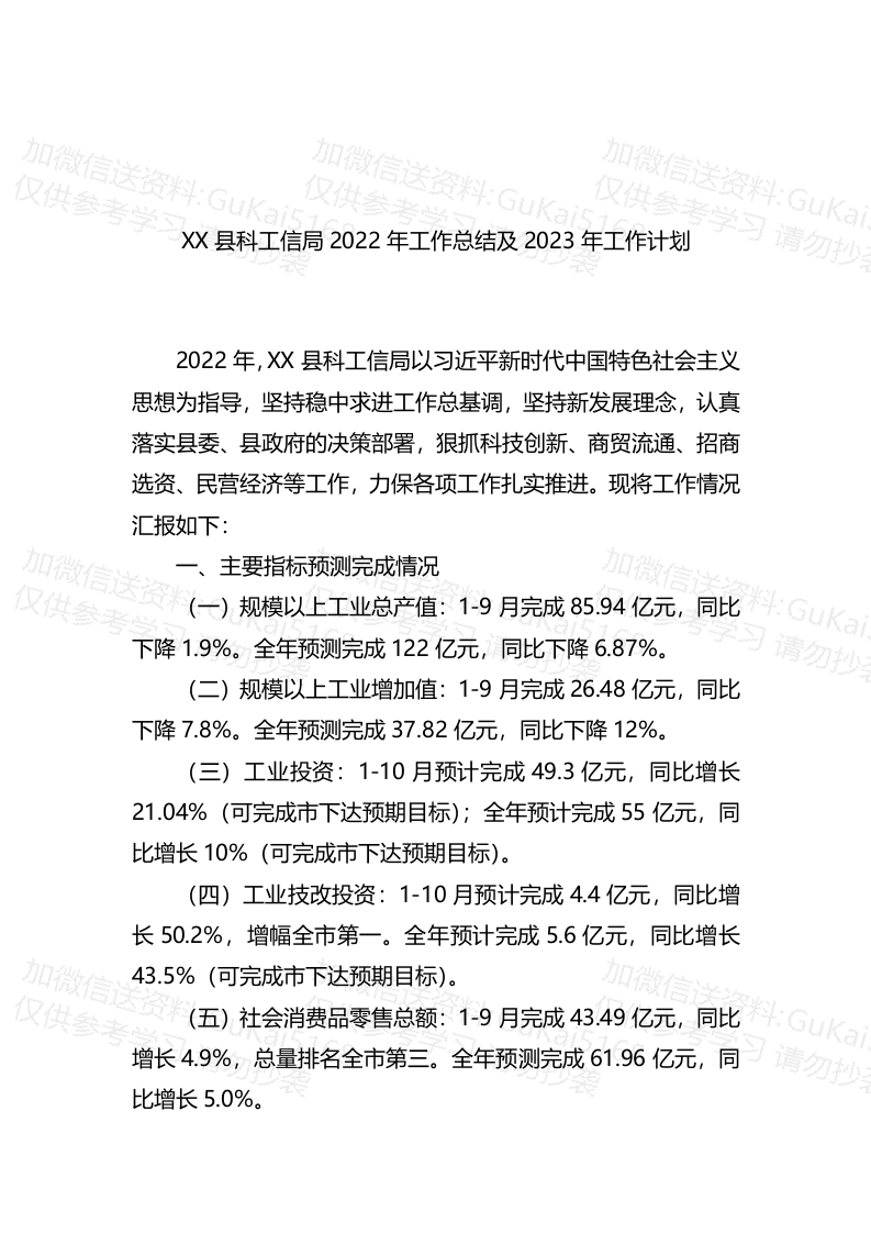 / XX县科工信局2022年工作总结及2023年工作计划