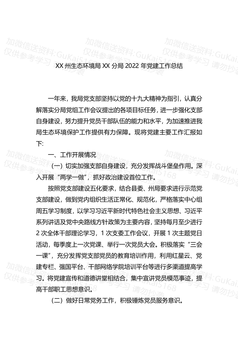 / XX州生态环境局XX分局2022年党建工作总结