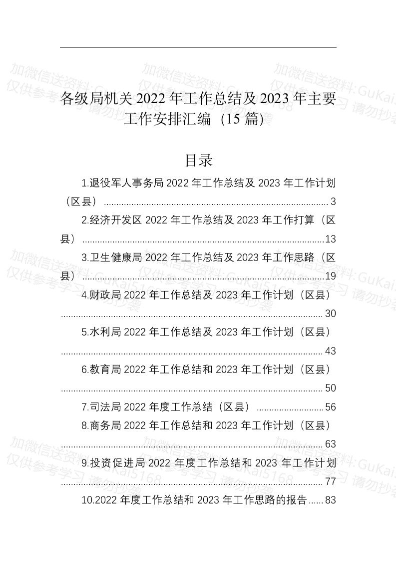 汇编1962-各级局机关2022年工作总结及2023年主要工作安排-15篇