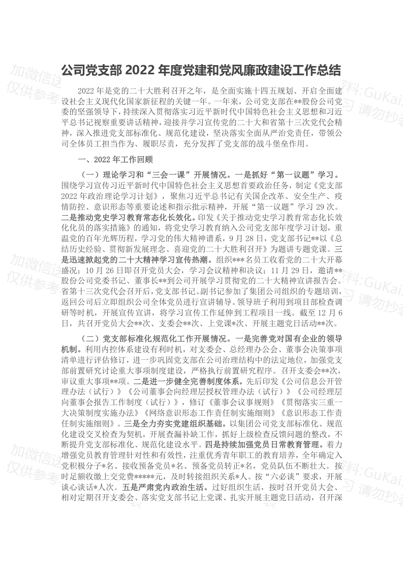 / 公司党支部2022年度党建和党风廉政建设工作总结