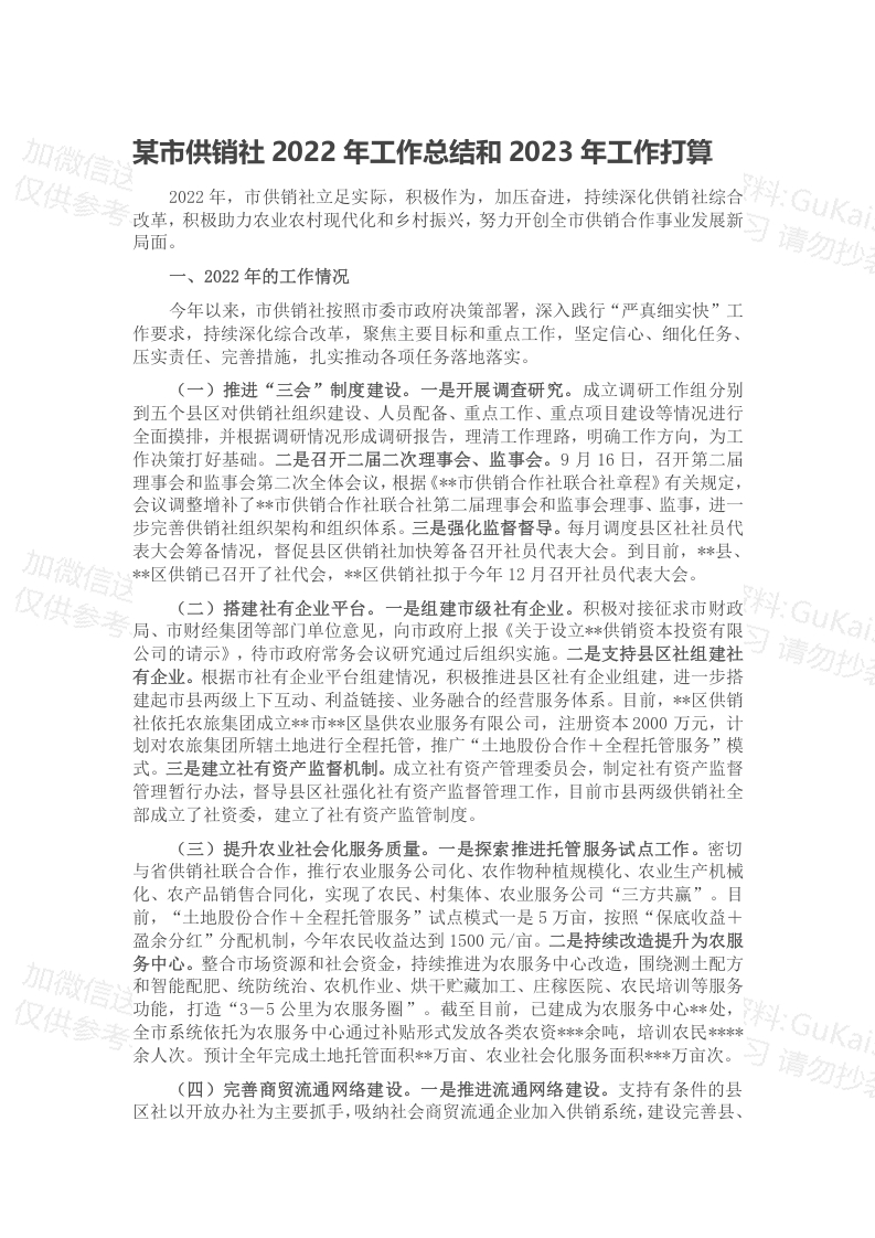 / 某市供销社2022年工作总结和2023年工作打算