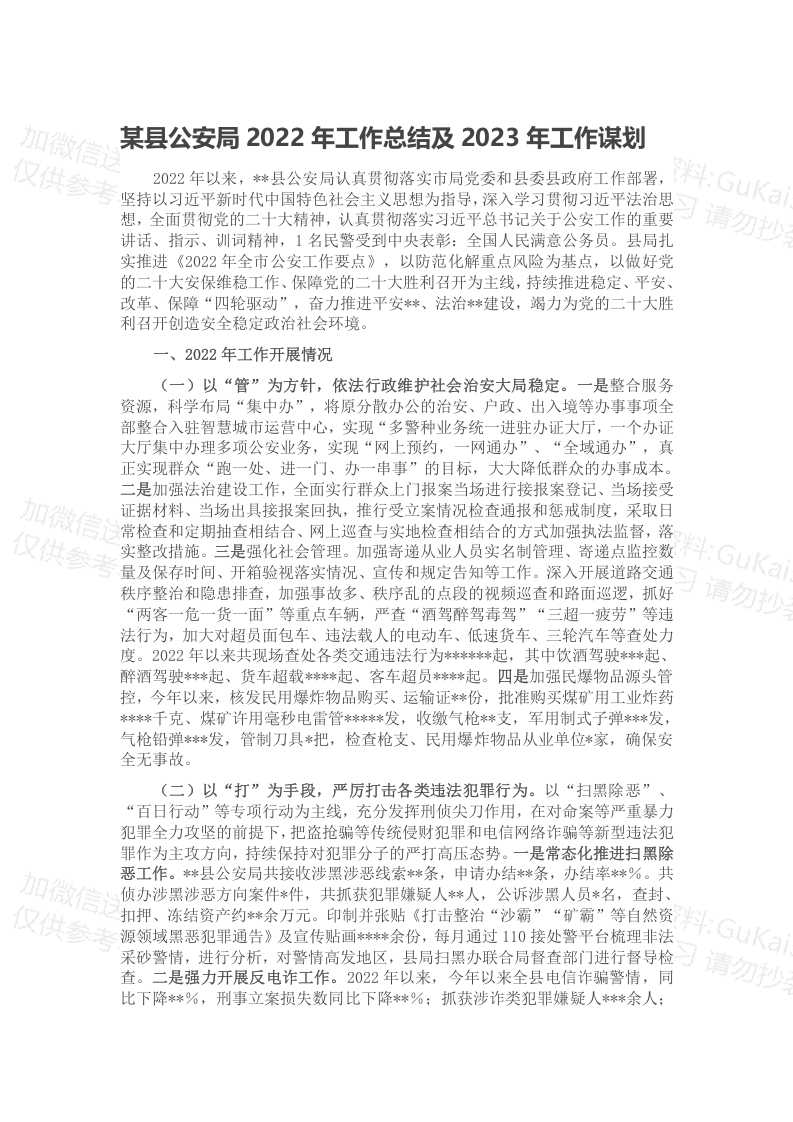 / 某县公安局2022年工作总结及2023年工作谋划