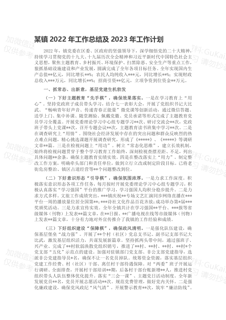 / 某镇2022年工作总结及2023年工作计划(二)