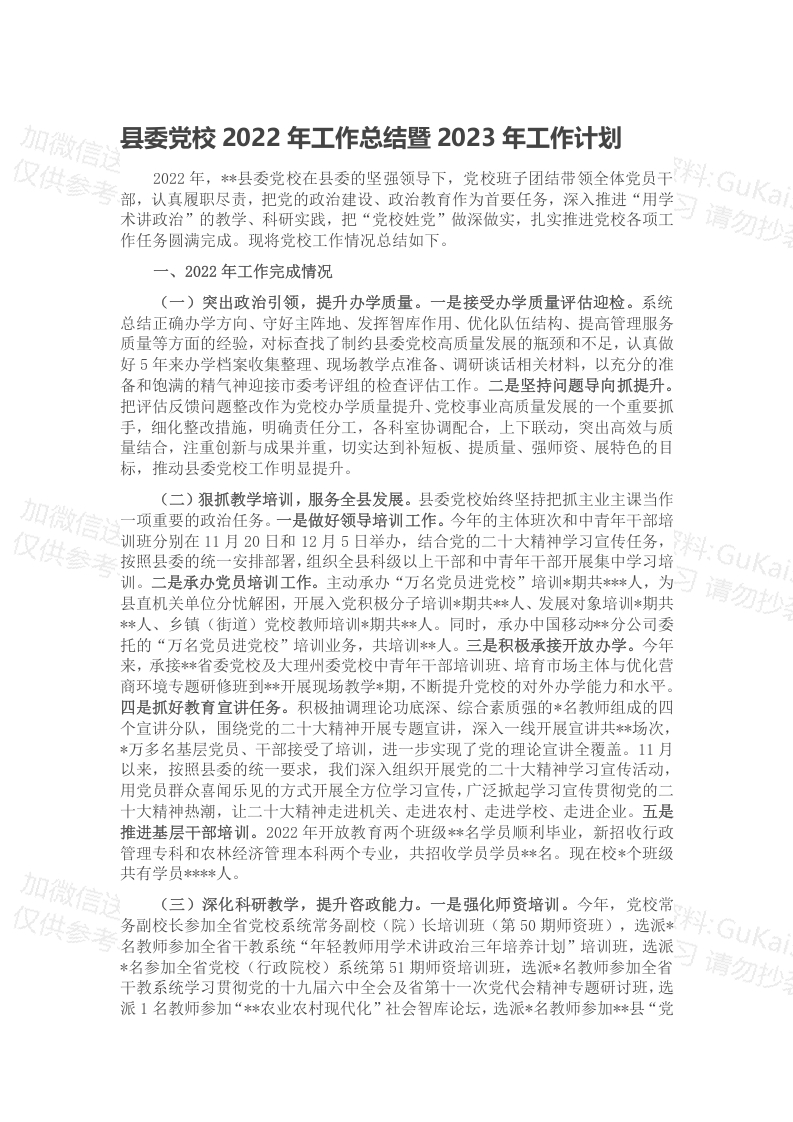 / 县委党校2022年工作总结暨2023年工作计划