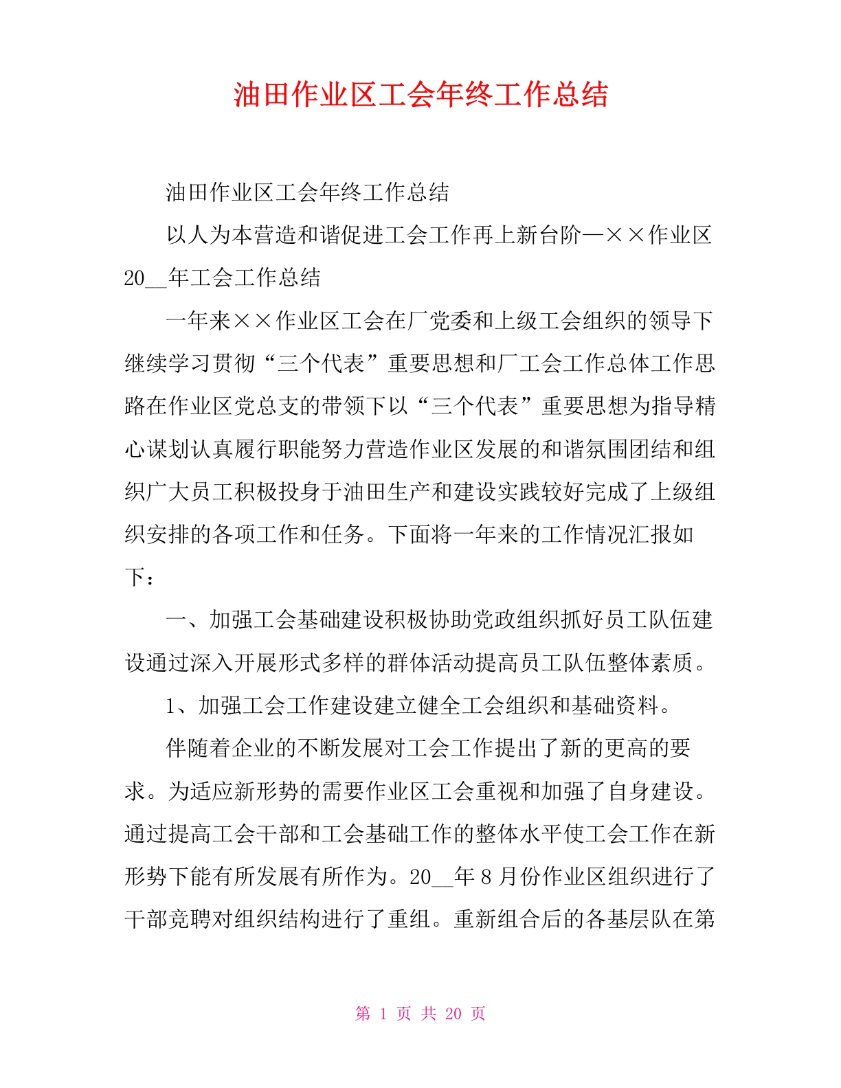 / 油田作业区工会年终工作总结