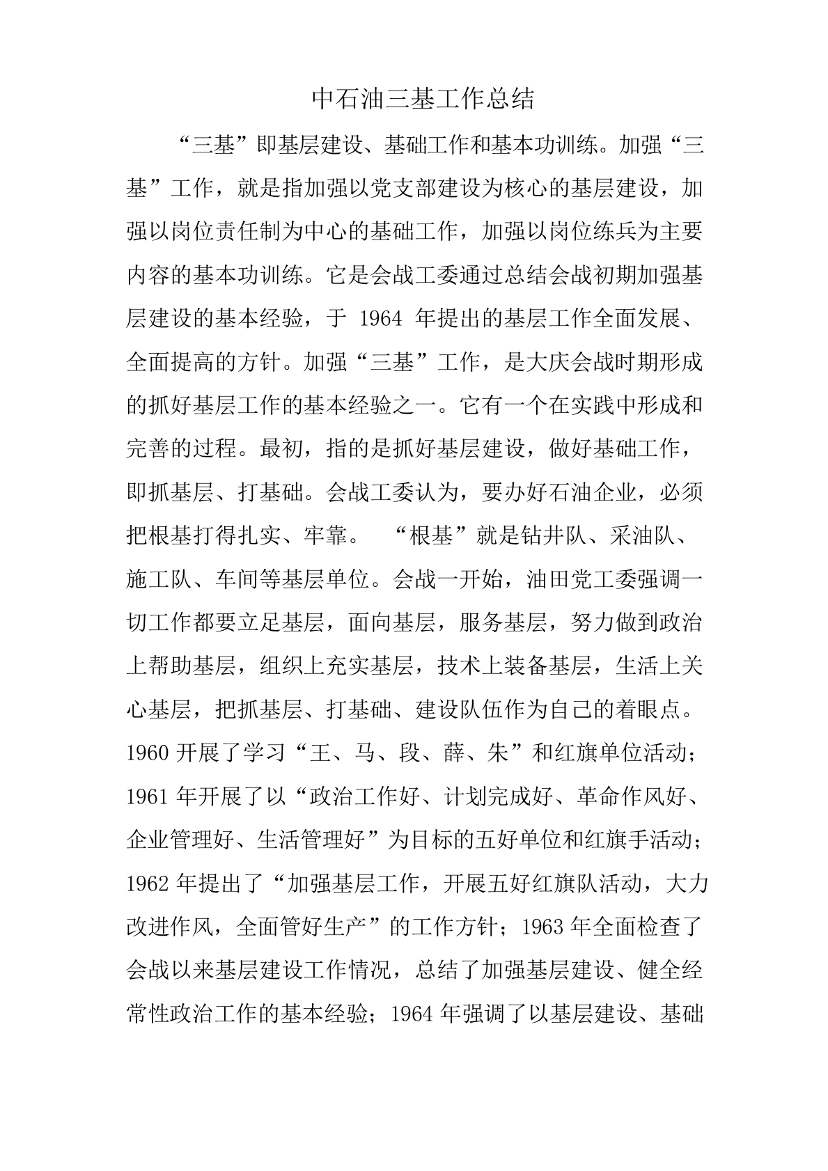 / 中石油三基工作总结