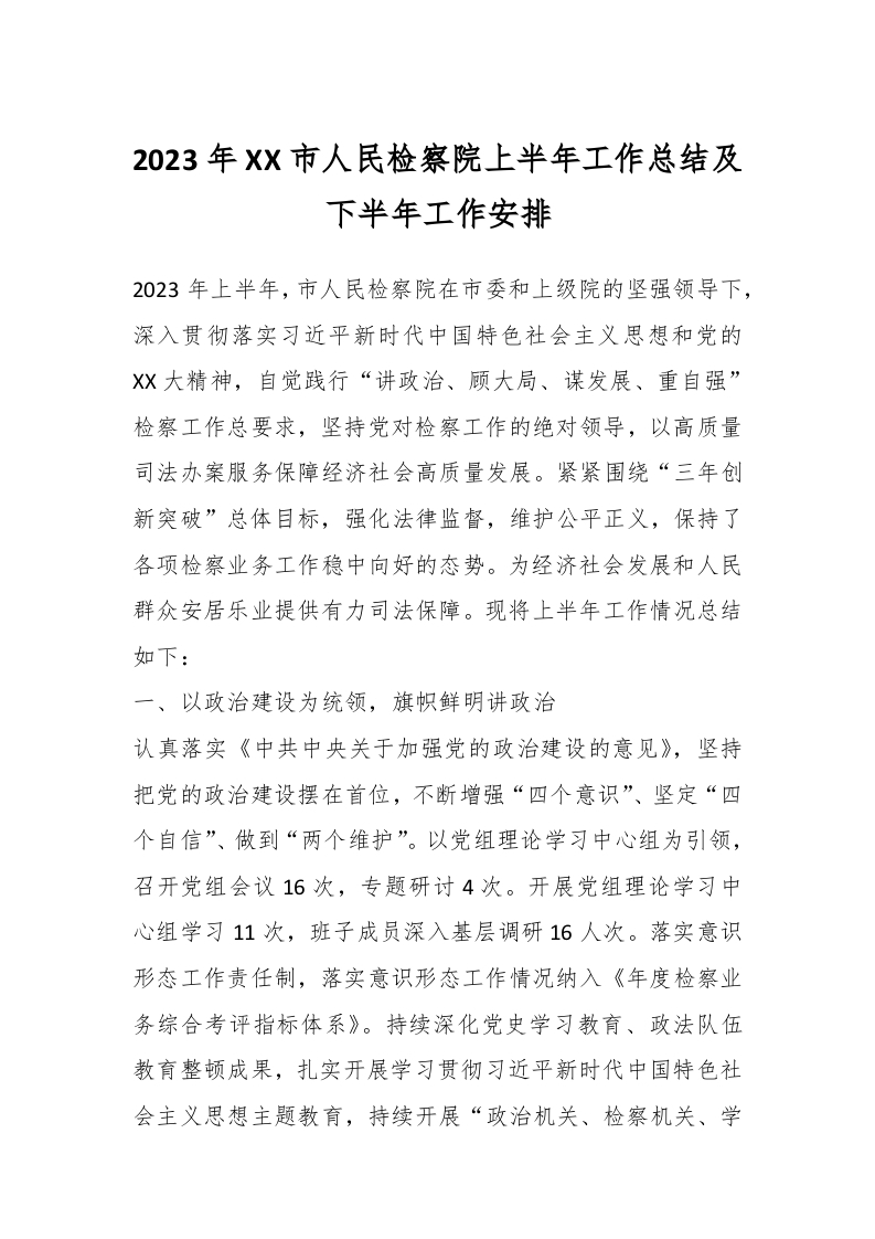 / 2023年XX市人民检察院上半年工作总结及下半年工作安排