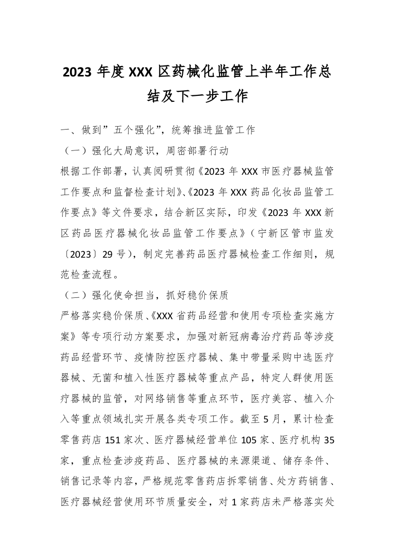 / 2023年度XXX区药械化监管上半年工作总结及下一步工作