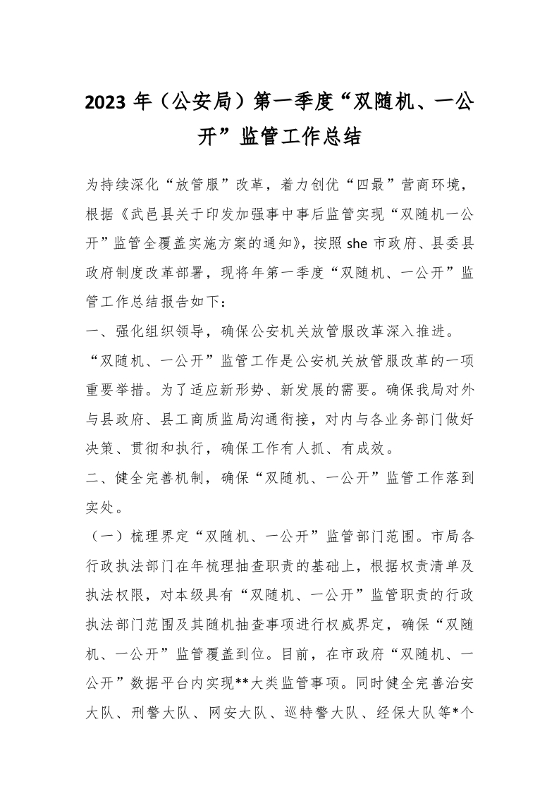 / 2023年(公安局)第一季度“双随机、一公开”监管工作总结