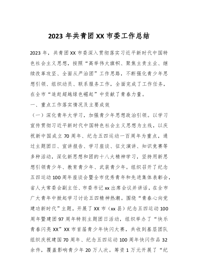2023年共青团XX市委工作总结