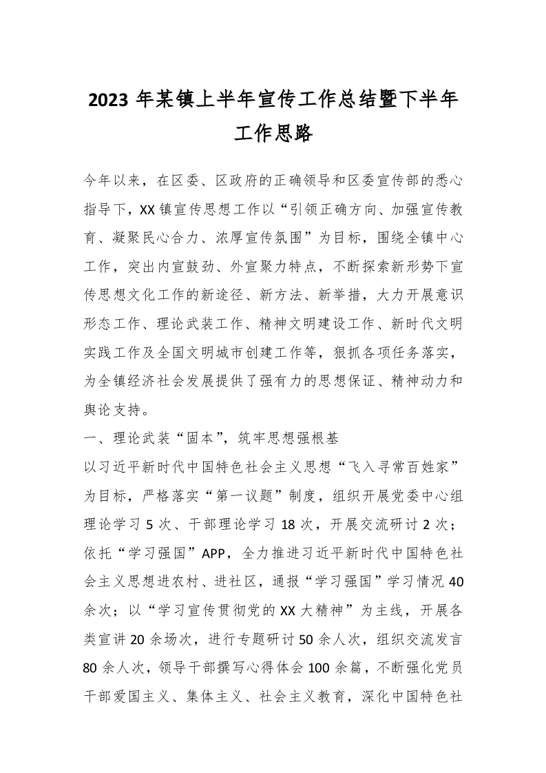 / 2023年某镇上半年宣传工作总结暨下半年工作思路