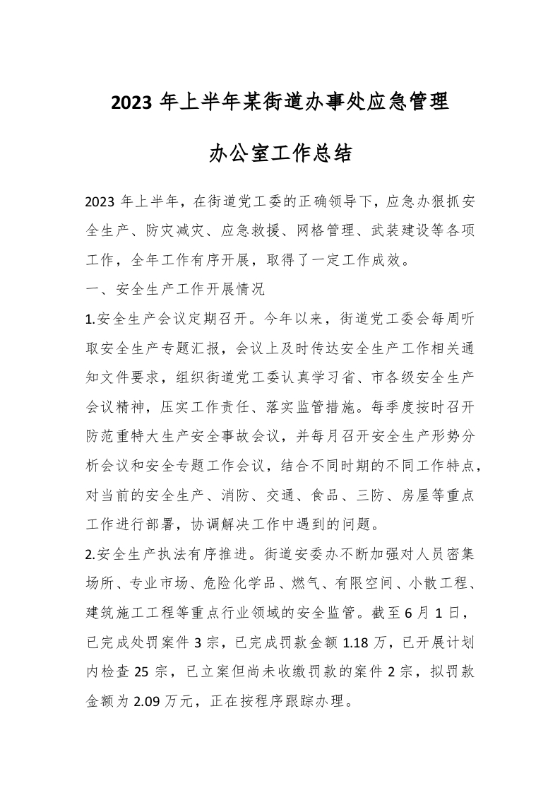 / 2023年上半年某街道办事处应急管理办公室工作总结