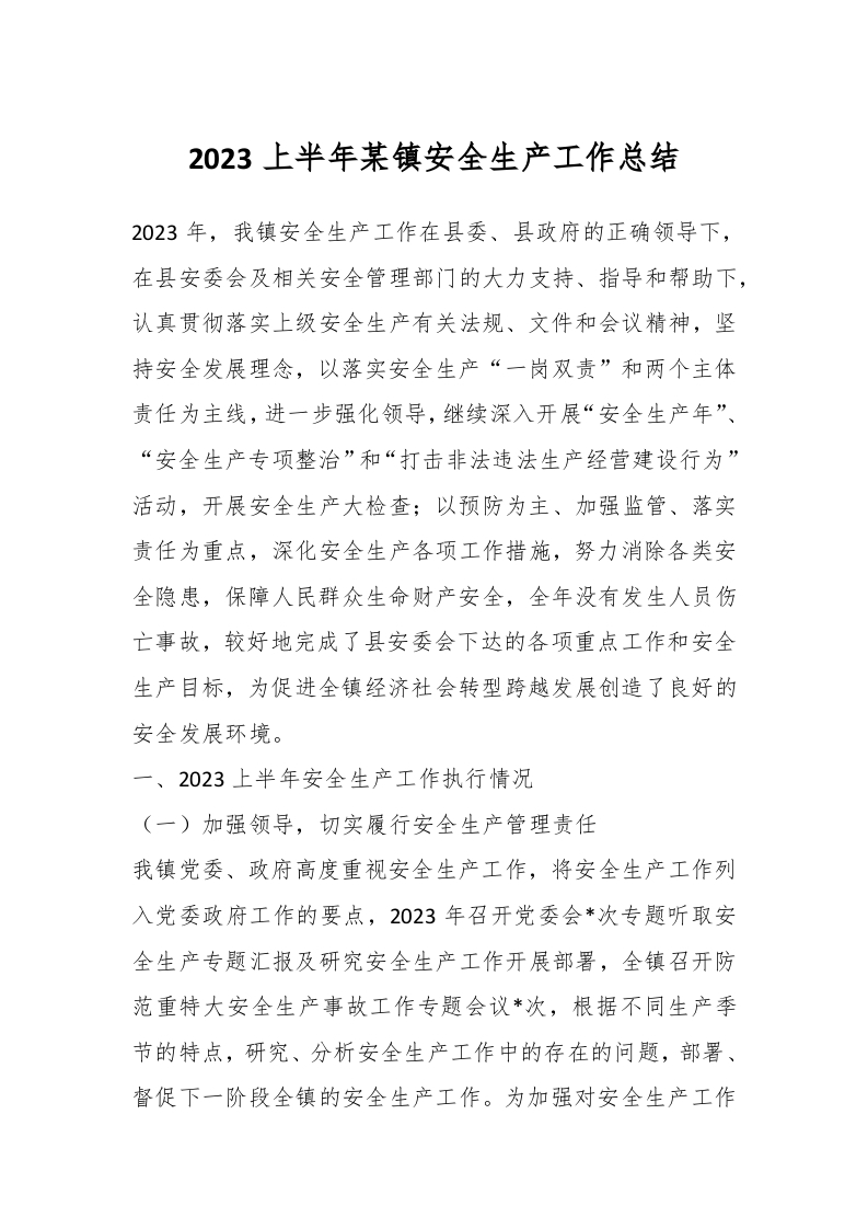 / 2023上半年某镇安全生产工作总结
