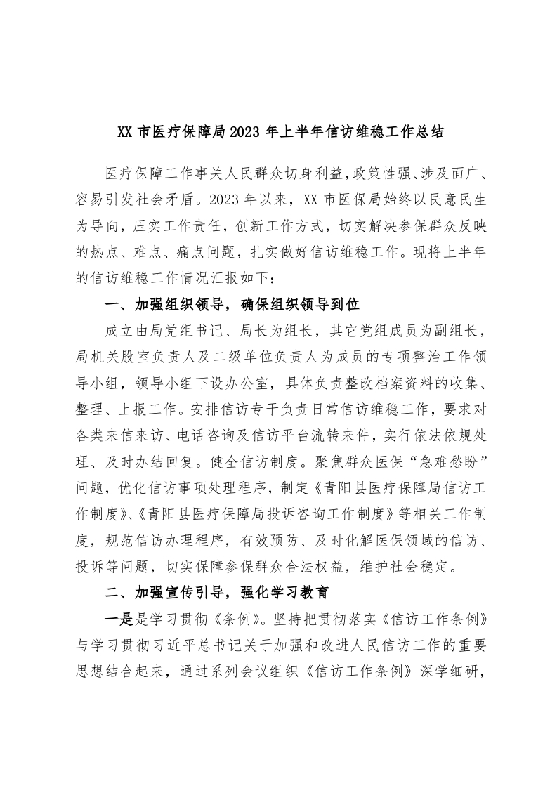 / XX市医疗保障局2023年上半年信访维稳工作总结