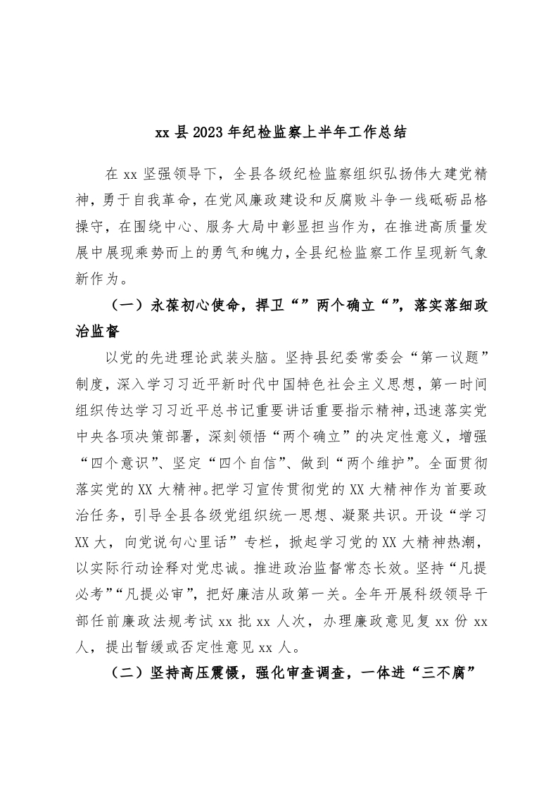 / xx县2023年纪检监察上半年工作总结