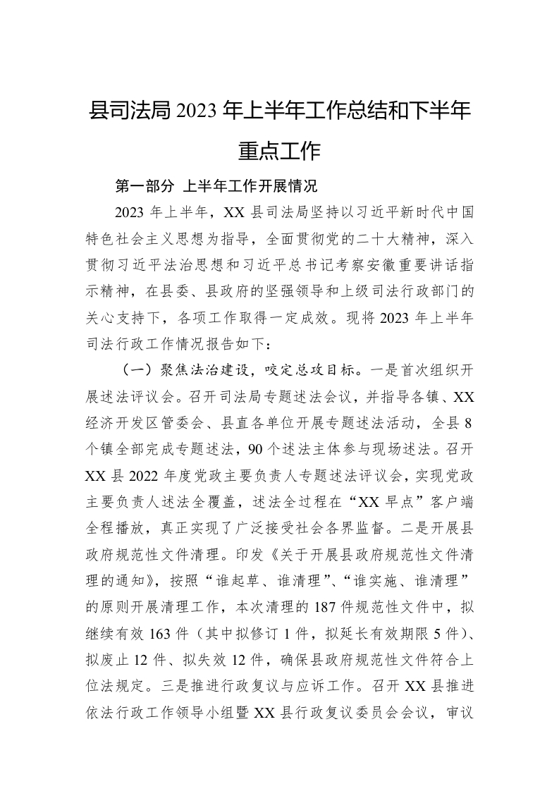 / 县司法局2023年上半年工作总结和下半年重点工作