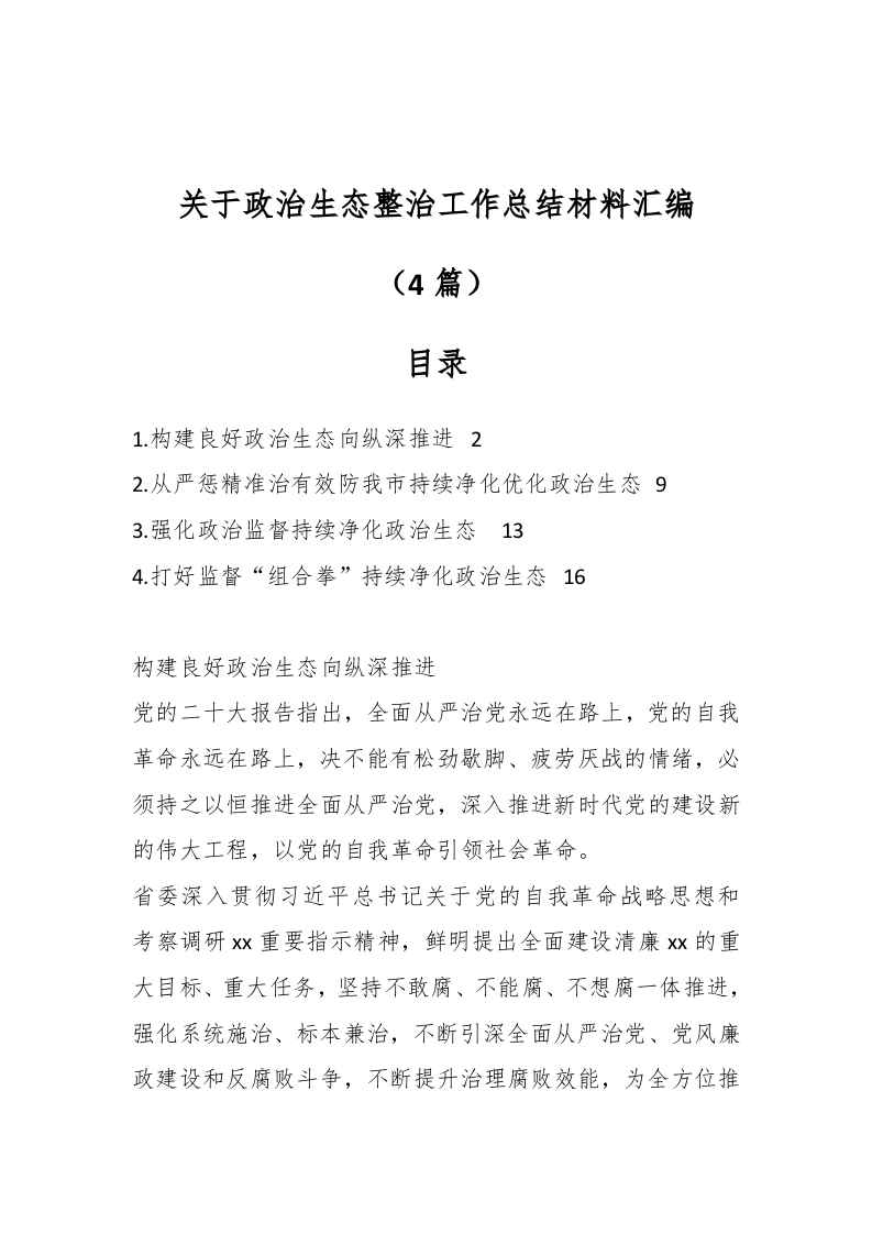 / (4篇)关于政治生态整治工作总结材料汇编