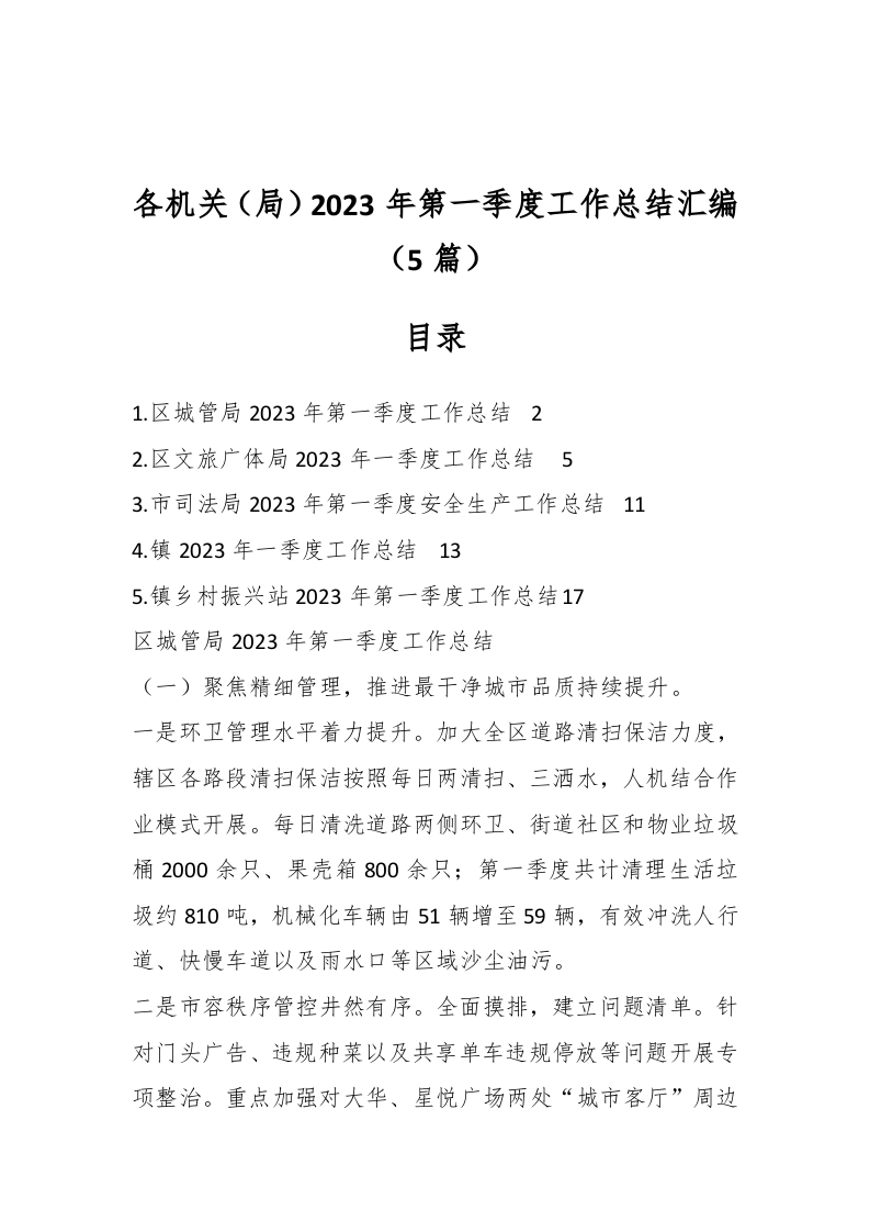 / (5篇)各机关(局)2023年第一季度工作总结汇编