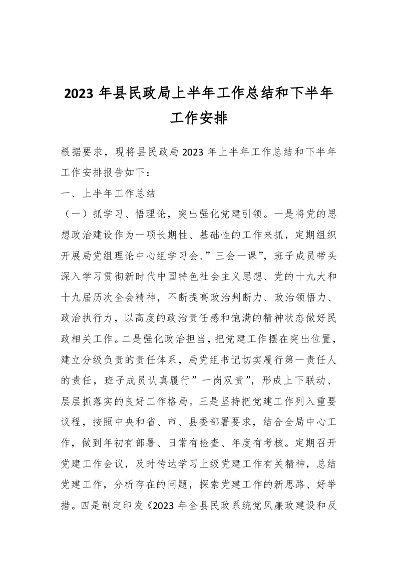 / 2023年县民政局上半年工作总结和下半年工作安排