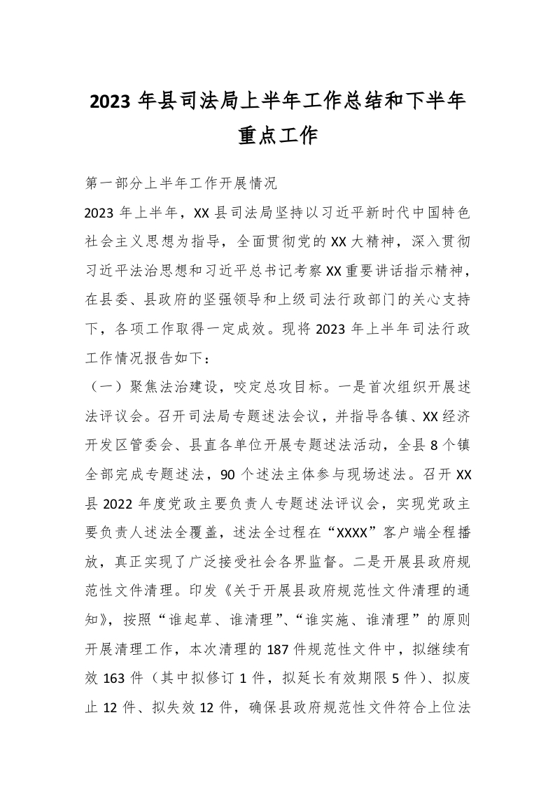 / 2023年县司法局上半年工作总结和下半年重点工作