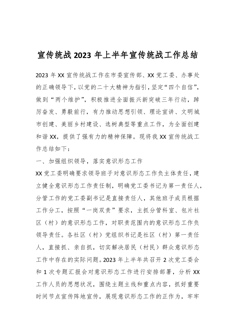 / 宣传统战2023年上半年宣传统战工作总结