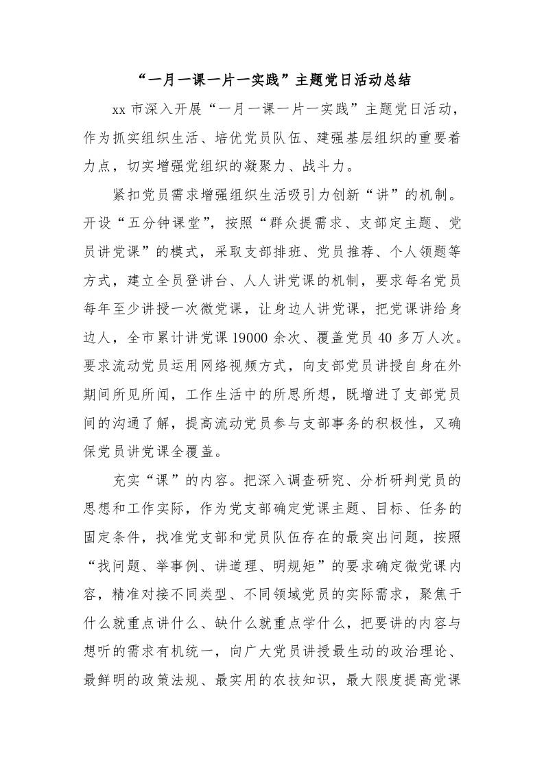 / “一月一课一片一实践”主题党日活动总结