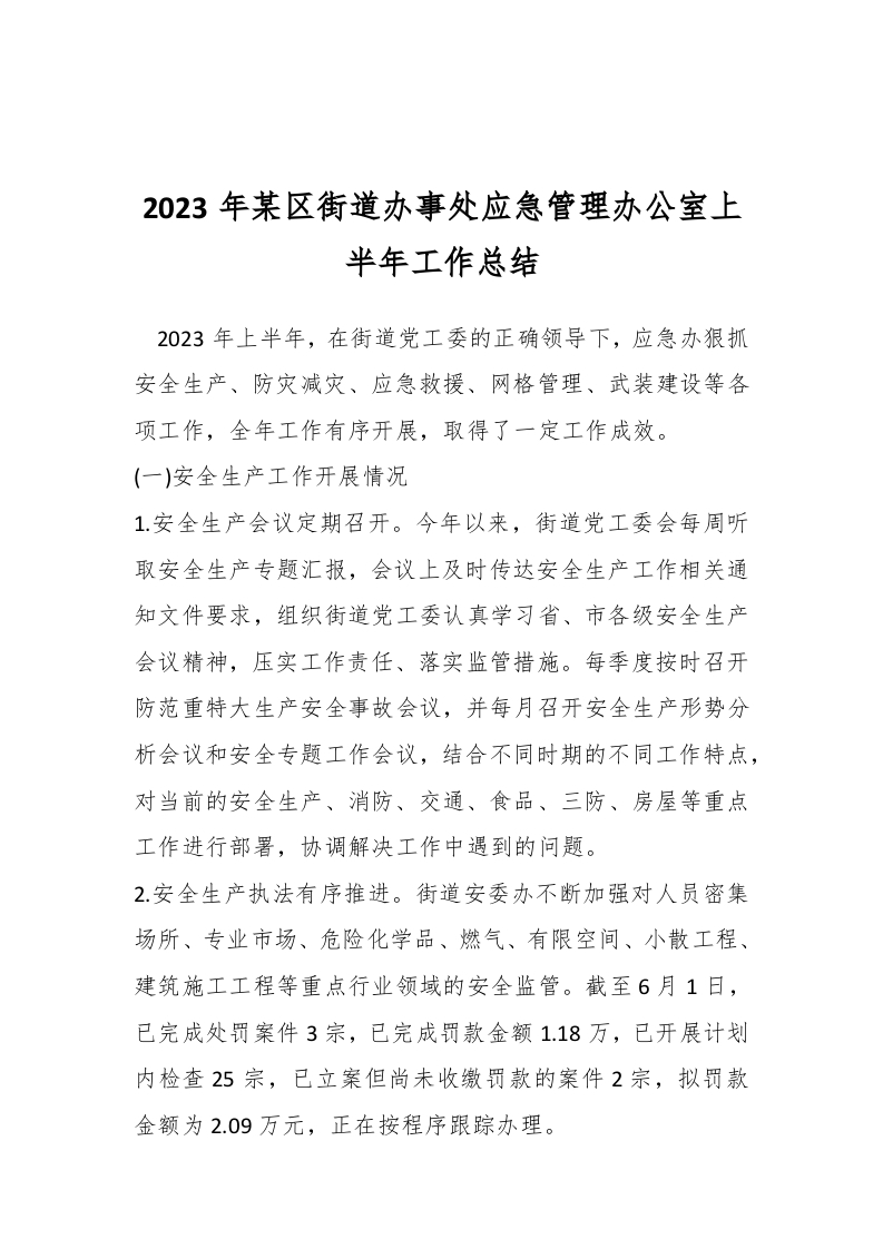 / 2023年某区街道办事处应急管理办公室上半年工作总结