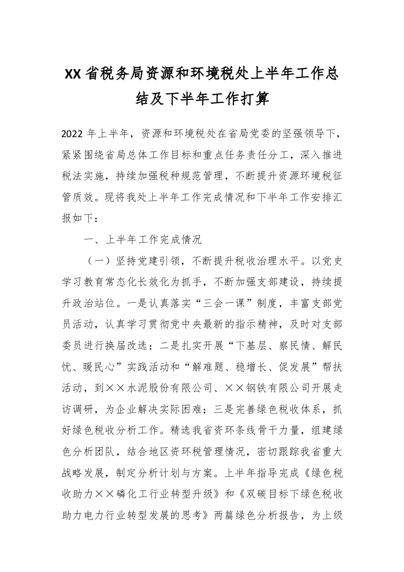 / XX省税务局资源和环境税处上半年工作总结及下半年工作打算