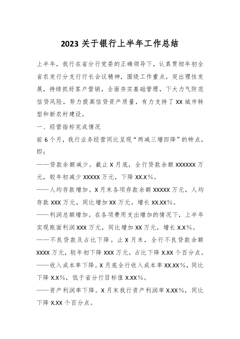 2023关于银行上半年工作总结