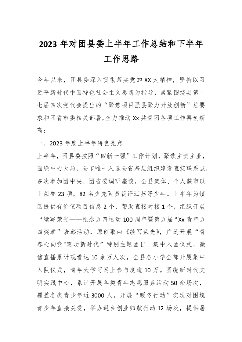 2023年对团县委上半年工作总结和下半年工作思路
