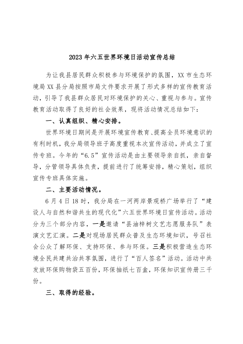 2023年六五世界环境日活动宣传总结